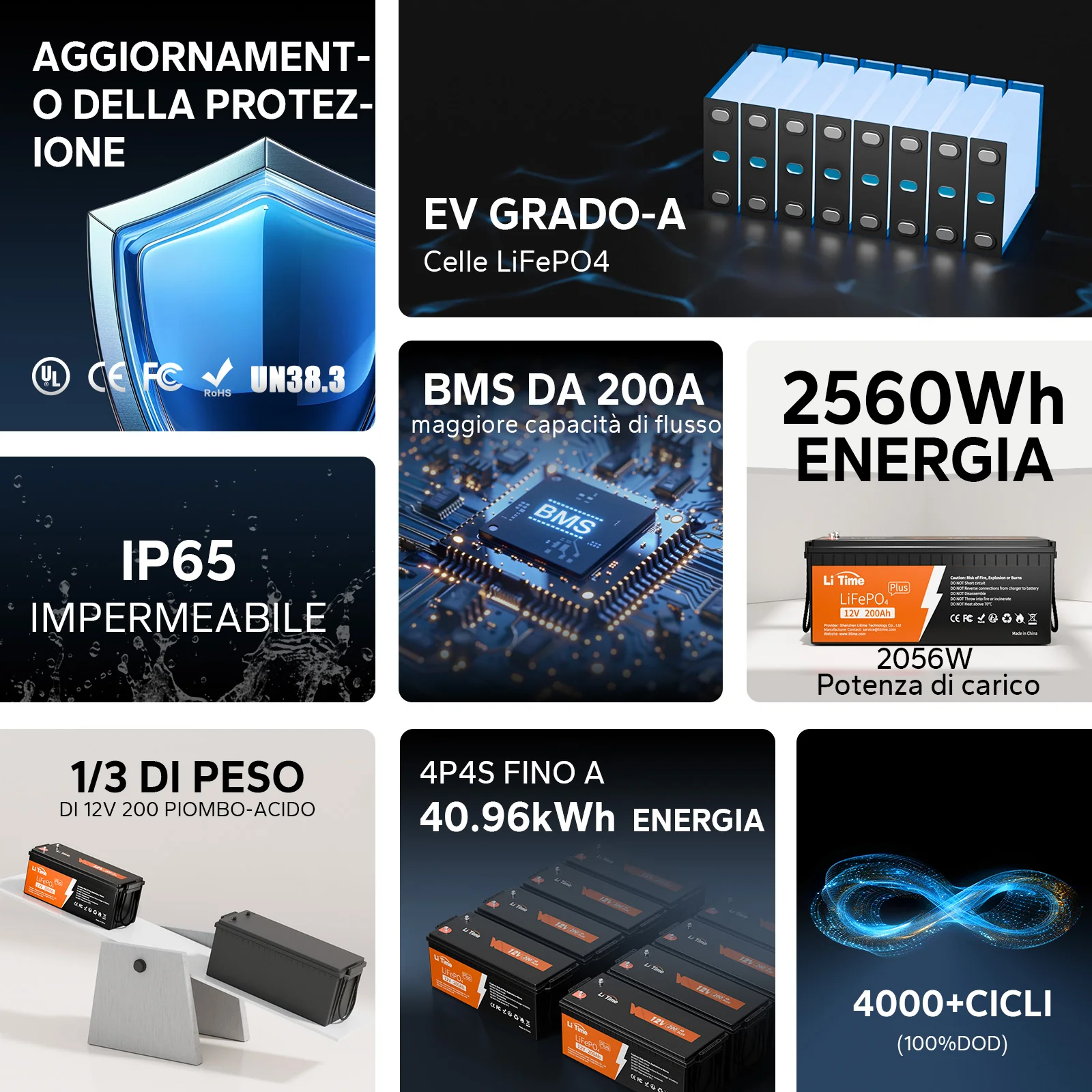 LiTime Batteria 12V 200Ah Plus LiFePO4 - BMS 200A